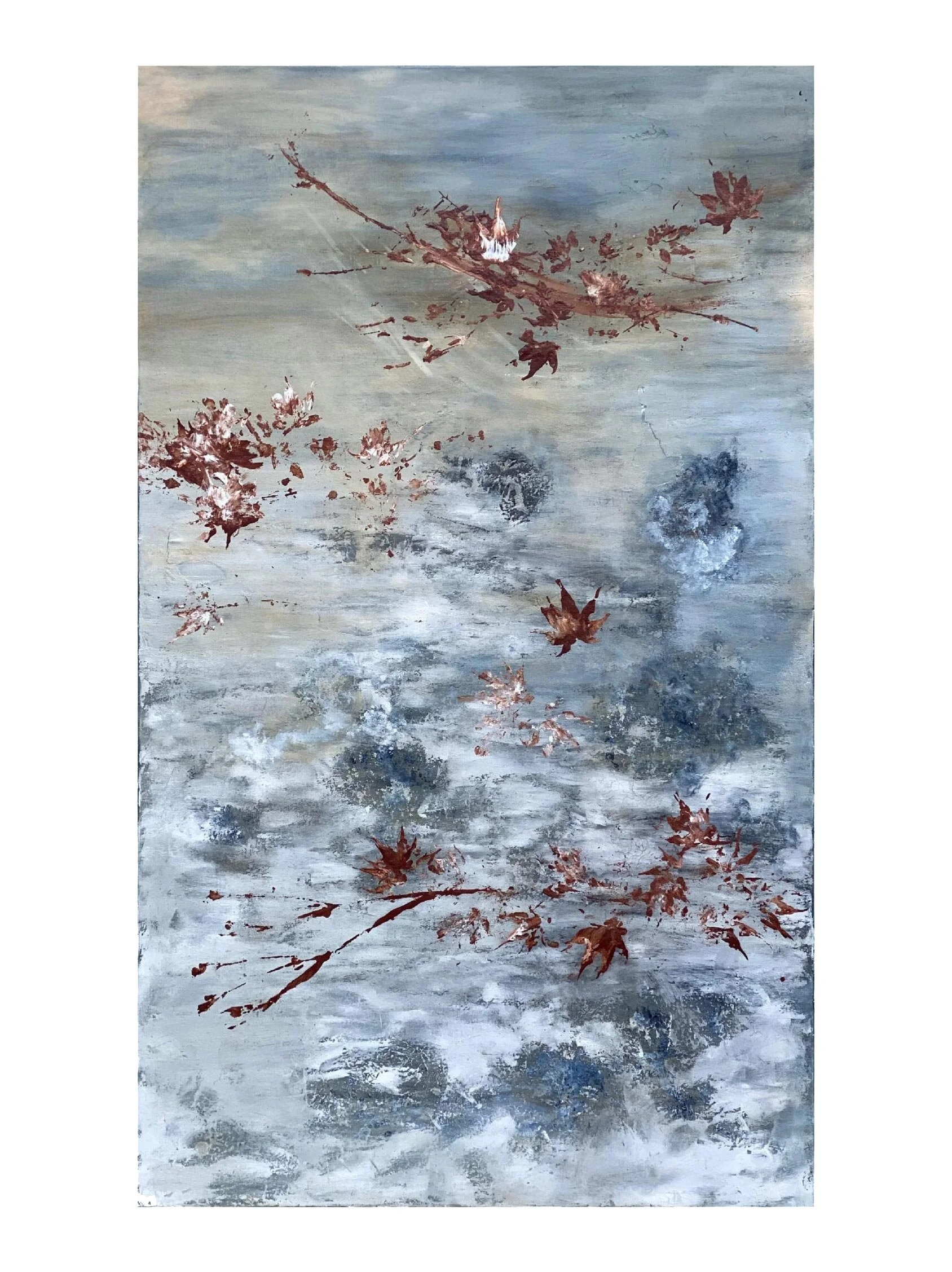 My paintings sometimes float memories of a familiar object or scape. However, I do not begin with an idea and later abstract it. More important to me are the relationships forged between the materials and myself as layers merge and sometimes peel away.